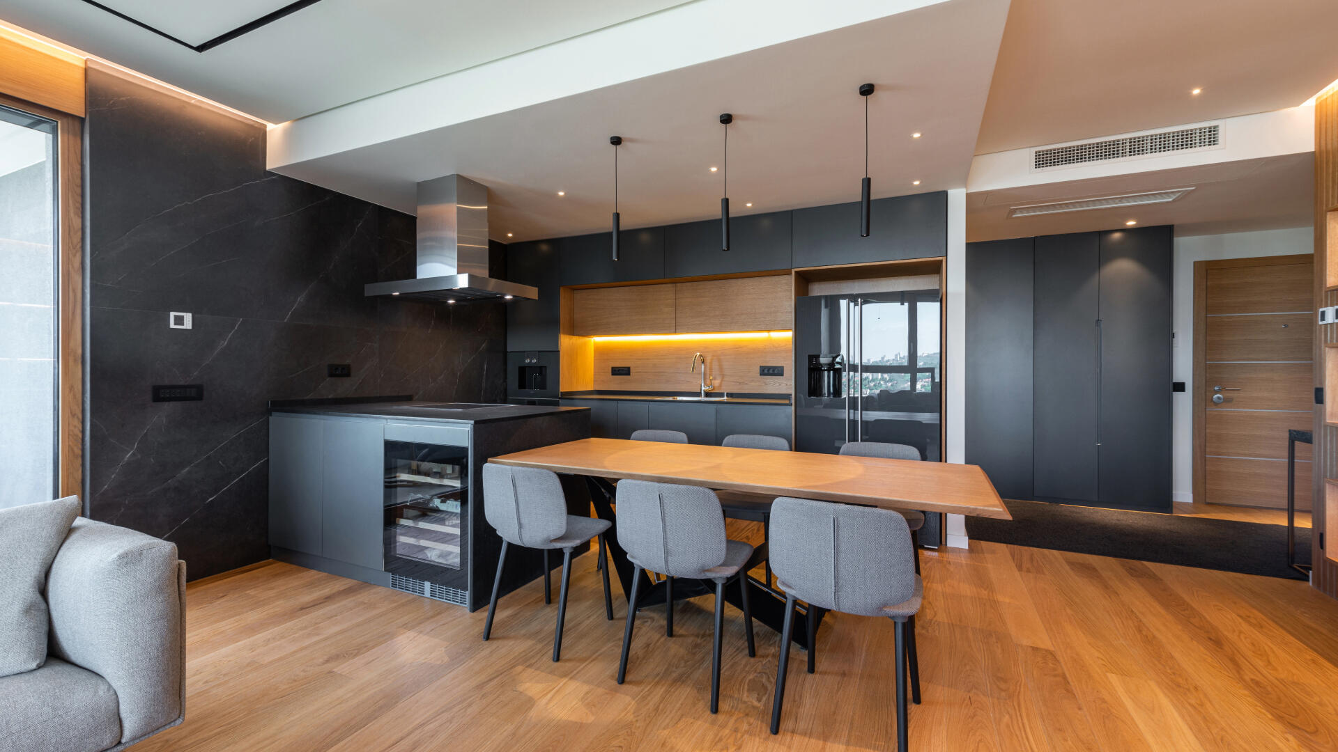 Komplette Neugestaltung einer Wohnung – offenes Wohnkonzept mit natürlichen Materialien.